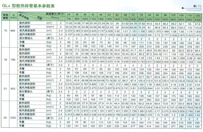| GLII型散熱器參數(shù) |